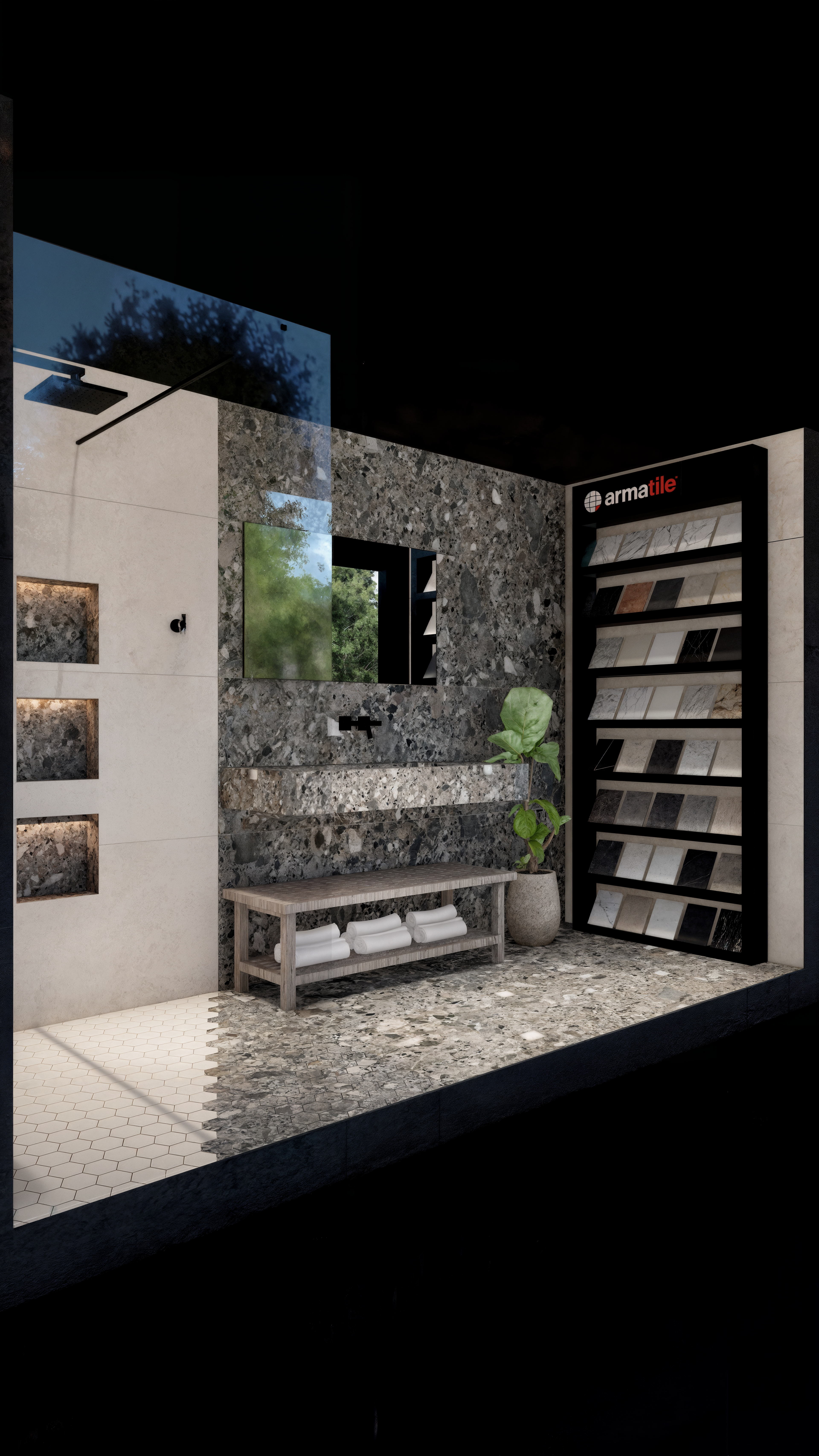 At Armatile, I develop a wide range of porcelain-focused design proposals, adapting to the needs of each client and project. Working with premium Spanish and Italian porcelain tiles, I create detailed visualizations that support material selection, spatial planning, and concept refinement. My workflow combines SketchUp and Lumion for 3D modeling and rendering, with Photoshop used to enhance clarity and presentation quality. In addition to client-driven projects, I also contribute to the development of new in-store displays that illustrate design possibilities and strengthen the overall customer experience.
